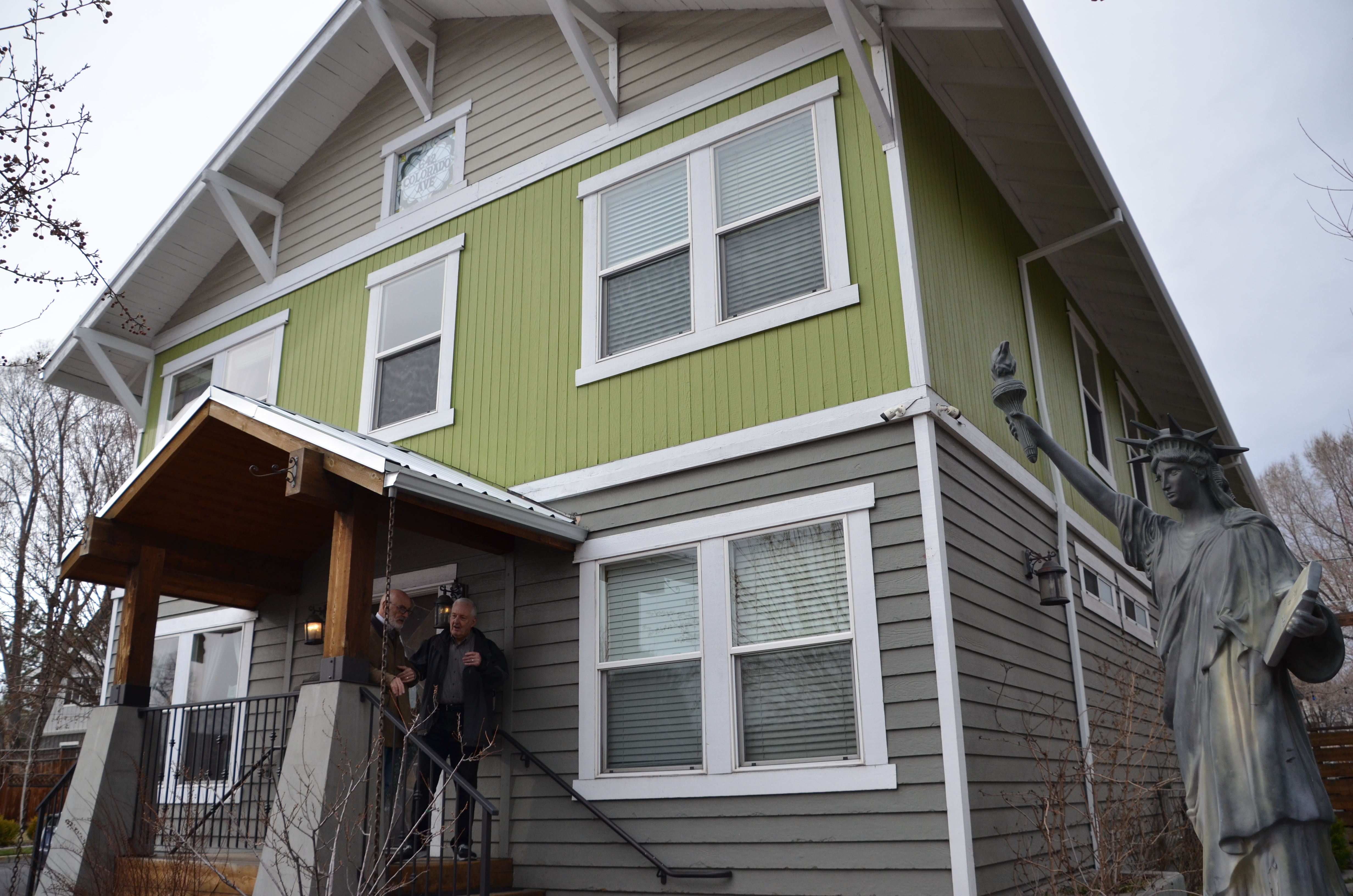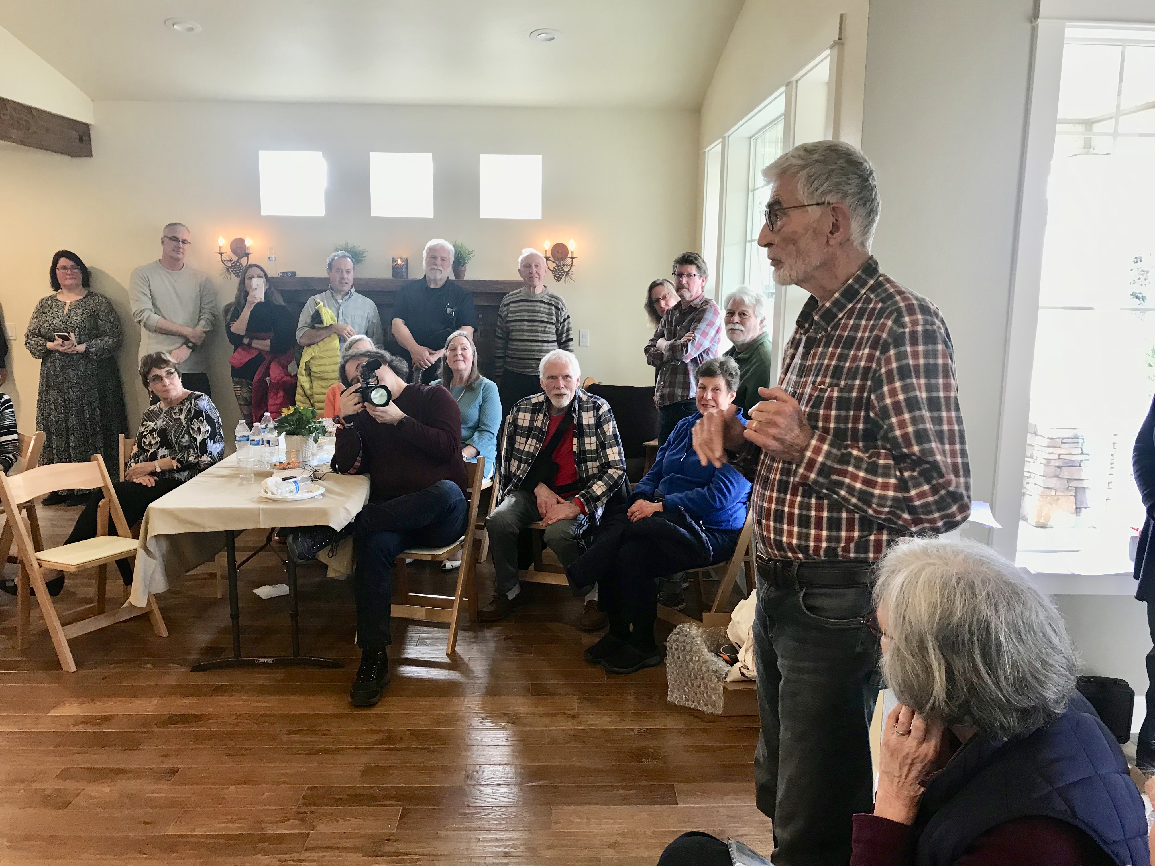 Then, in Bend, he got involved in two major projects. He advised Habitat for Humanity on management efficiencies that resulted in their ability to build more homes -- at the same time that Chris was volunteering at Habitat's ReStore, turning seemingly worthless donations into works of art. And Howard helped recruit a major investor to finance construction of the Central Oregon Veterans Ranch, dedicated to helping war veterans cope with Post Traumatic Stress Disorder, and became its board president. And he played in and served as president of a concert band and also played in a swing band. In each, he wielded the same alto saxophone he played in the Purdue University Marching Band in the late 1950s. And at every opportunity, Howard photographed the people and non-profit organizations in the area because that's what it was ultimately all about: being there for others.